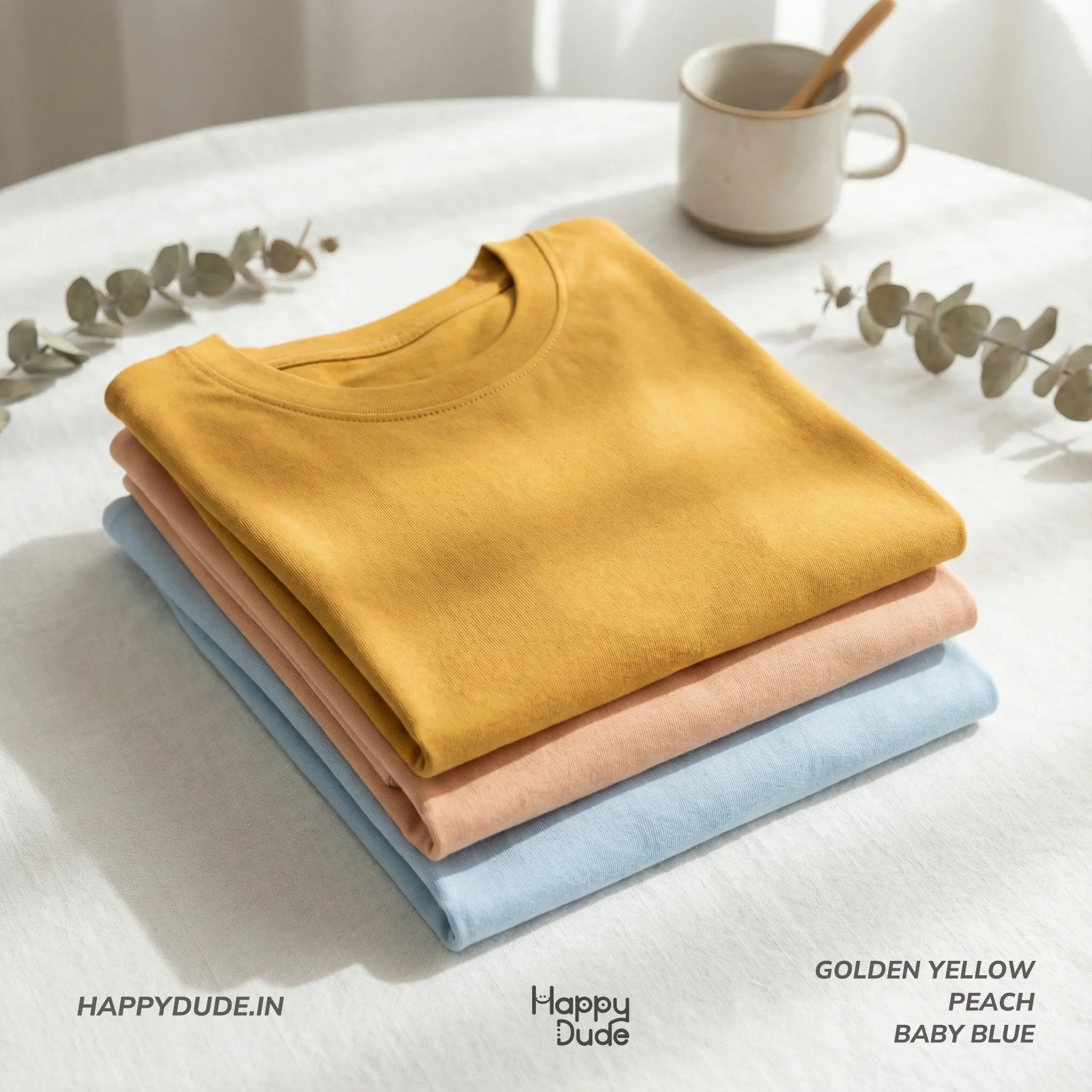 Pack of 3 (Golden Yellow, Peach and Baby Blue) – Men Solid Tees