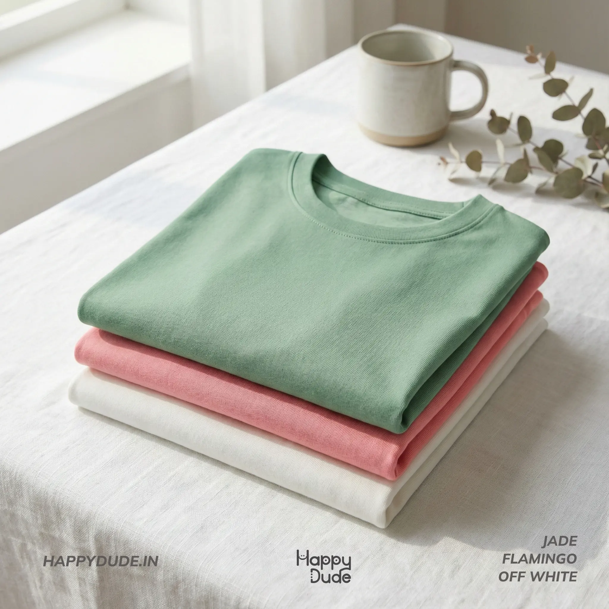 Pack of 3 (Jade, Flamingo and Off White) – Men Solid Tees